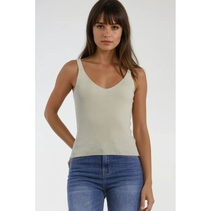 Clean, minimal, and endlessly wearable, this comfy ribbed knitted tank top in beige brings understated elegance to your everyday essentials. Designed with a flattering scoop neckline, it softly frames the shoulders and collarbone, while the bodycon fit enh
