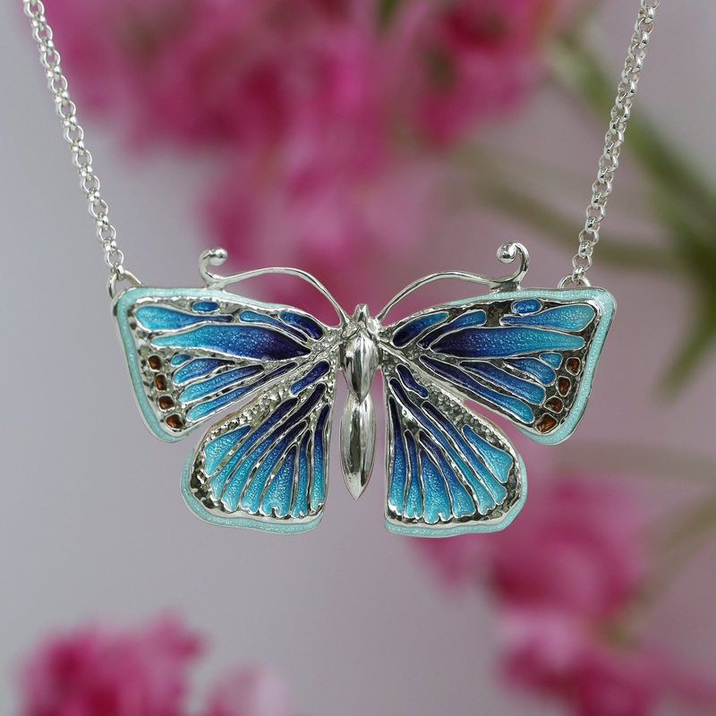 Sheilas inspiration for this collection took flight after a Red Admiral butterfly in Sheila’s garden landed on her granddaughter Hollys head! The unique Butterfly collection has been beautifully designed and crafted by Sheilas skilled jewellers. All designs are hand-enamelled in a range of colourways, depending on your choice of Butterfly.