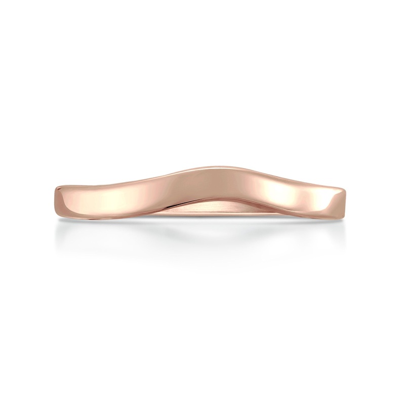A wedding band with subtle curve in warm 9ct rose gold, to match Sheilas Contemporary 0.40ct Solitaire Diamond Ring.