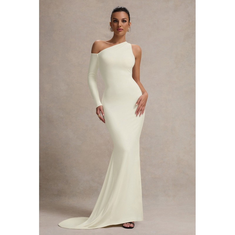 Contradiction | Cream One-Sleeve Asymmetric Maxi Dress