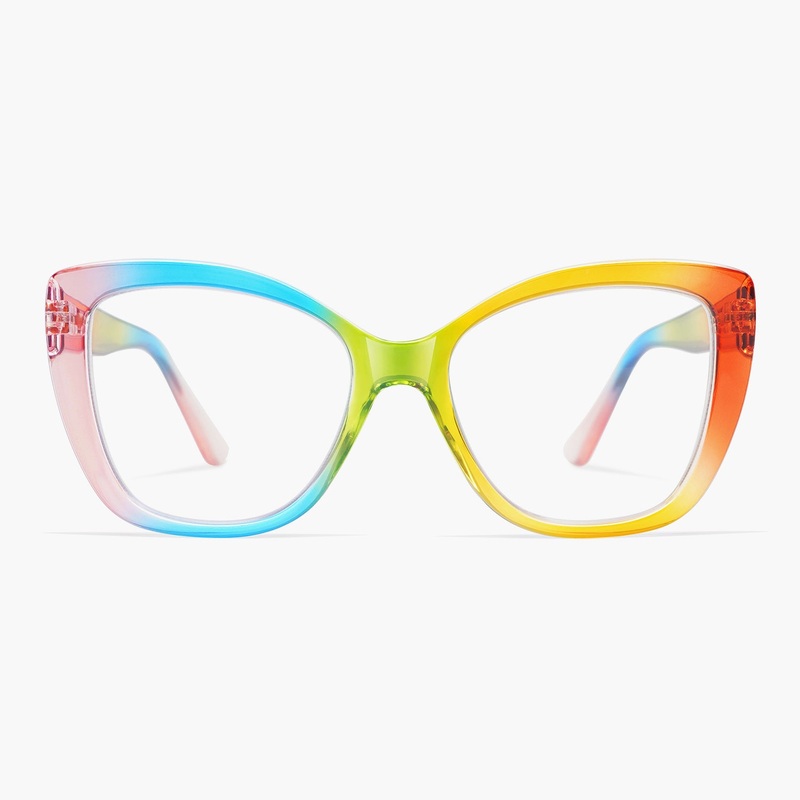 Unleash your inner style icon with Cora! These trendy oversized cat eye glasses feature prescription lenses and a stylish rainbow square frame, making them the perfect accessory for any fashion-forward woman. Stand out from the crowd and see the world thro