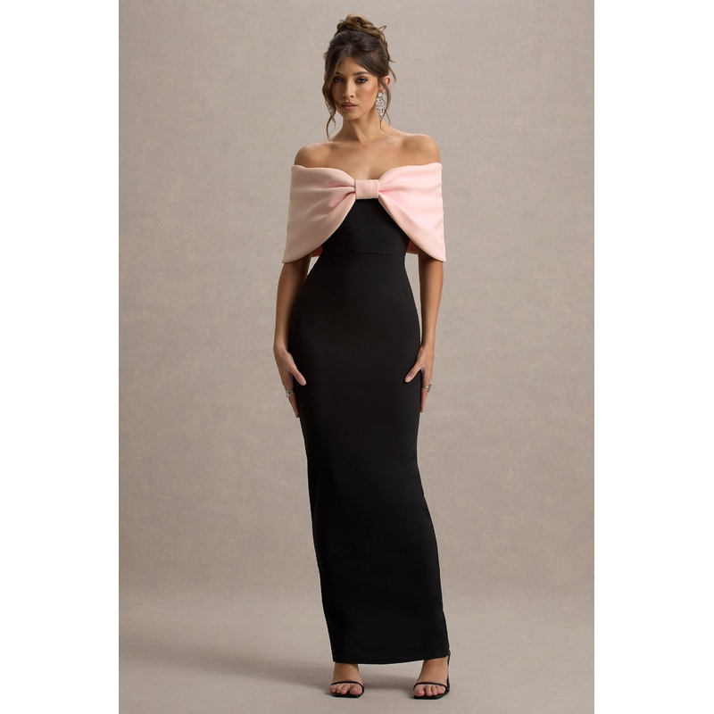 Cornelia | Pink & Black Strapless Maxi Dress With Oversized Bow