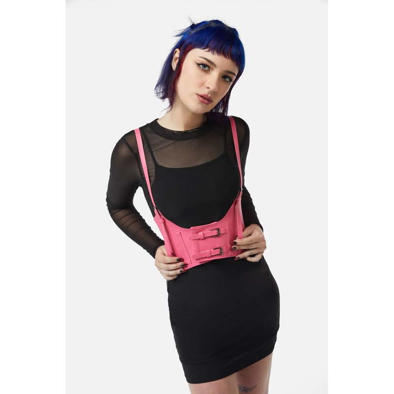 Corset Harness- Underbust harness- Hot pink vegan leather- Silver toned buckles- Elasticated backing- Velcro closure- Comes in sizes XS, S, M and LProduct Code: DWFX012