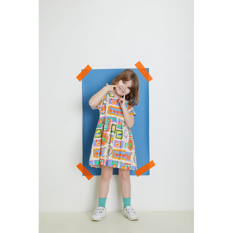 printed cotton seersucker kids dress- crafted from a softened cotton seersucker quality- short length sleeve- round neckline - knee length- easy button back opening- soft gathering through waist seam- features exclusive princess highway kids printProduct C