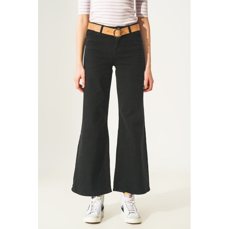 Cotton Blend Wide Leg Jeans In Black