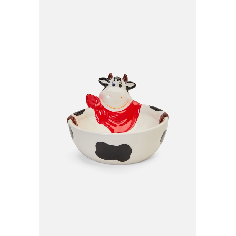 Cow Trinket Bowl– A fun and cute novelty bowl– Sweet cow design– White with black, brown and red– Approximate diameter of 16cm