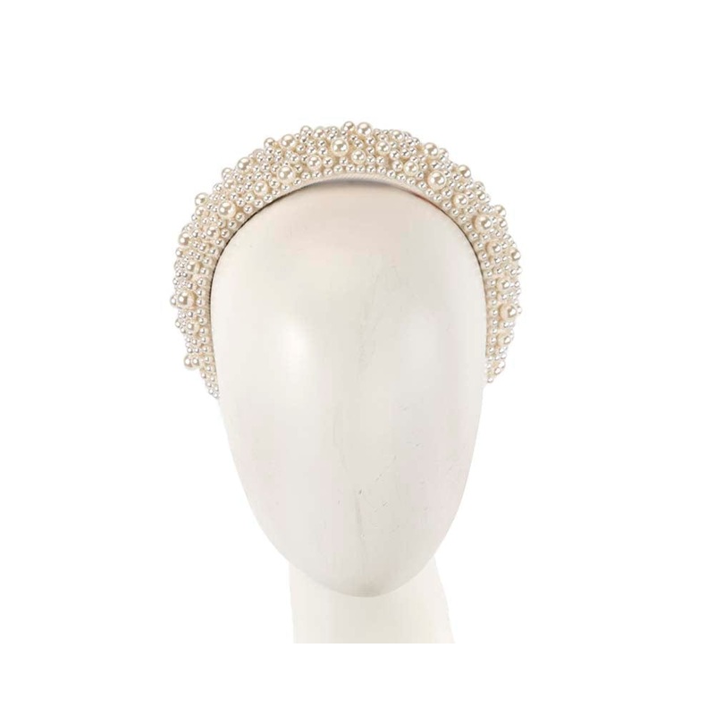 Cream headband fascinator covered in pearls. Perfect racing accessory.