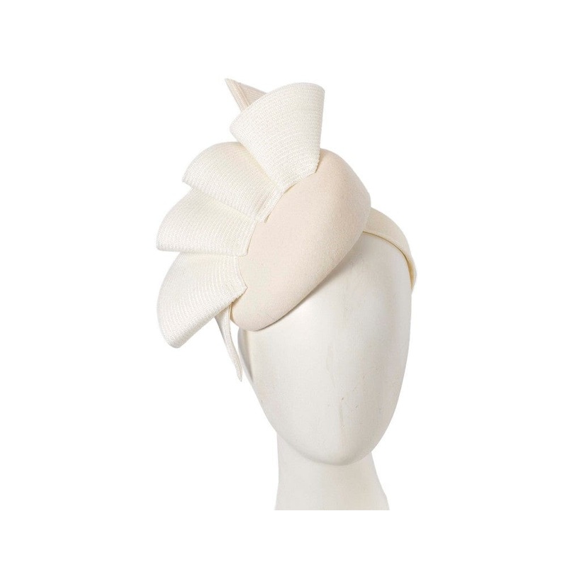 Created in the heart of Melbourne by our experienced milliners, we are proud to present bespoke cream winter pillbox racing fascinator by Fillies Collection. Classic pillbox base embellished with PU wave and placed on the headband. Made in Australia Renown