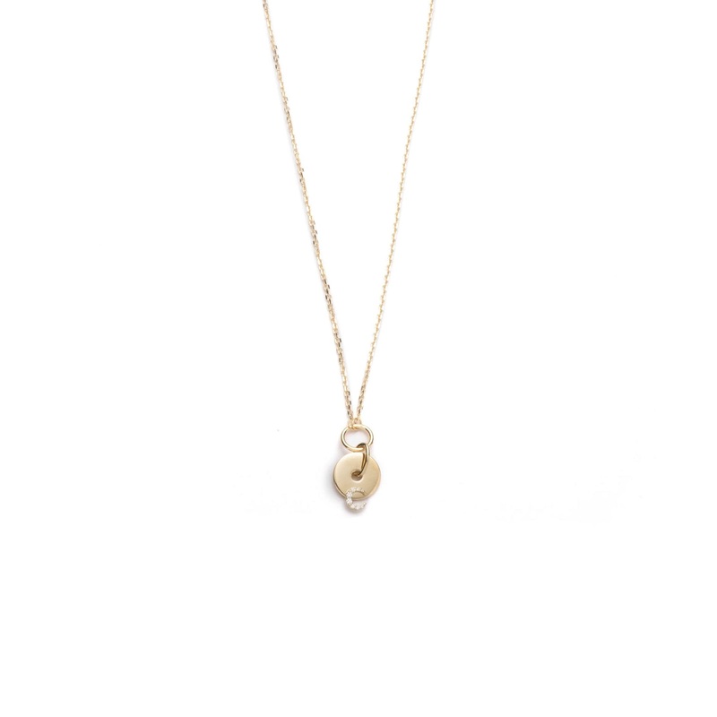 DescriptionHandcrafted in 18-karat gold, this adjustable 16" Disk Drop necklace symbolizes Karma. To aid the continued growth is a crescent moon, for its Latin root word, crescere. Add on an oval annex link and mini coin or crest to build your mini-story t