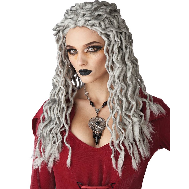 Conjure up mystical voodoo magic in this Crinkle Dreadlocks Long Grey Wig. The wig is grey and features long crinkled and twirled strands of hair designed to imitate a deadlock look. It’s perfect for transforming into a mischievous swamp witch from the bayou this Halloween, or even as a pirate wig or witch wig too! Wear a wig cap for added comfort and to keep your own hair under wraps.
