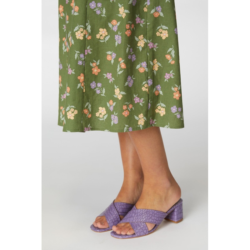 Croc Slide -Cross over strap detailing -Croc texture -2 inch block heel -Available in natural and lilac Product Code: PWSQ005110