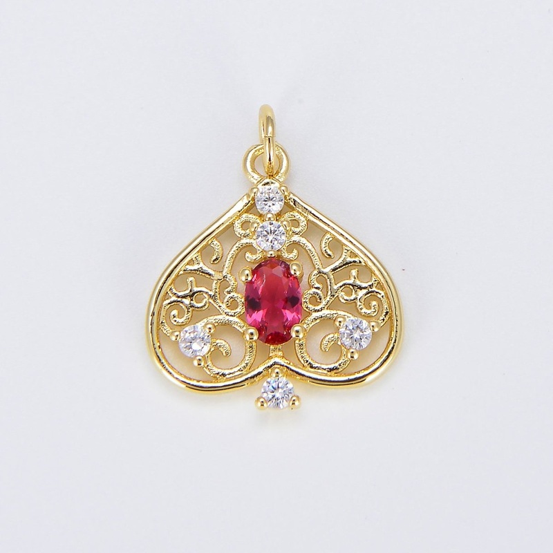 Cubic Spades Charm Gold Filigree Lucky Charm, Spades Dainty Pendant Charm, For DIY Jewelry E-814