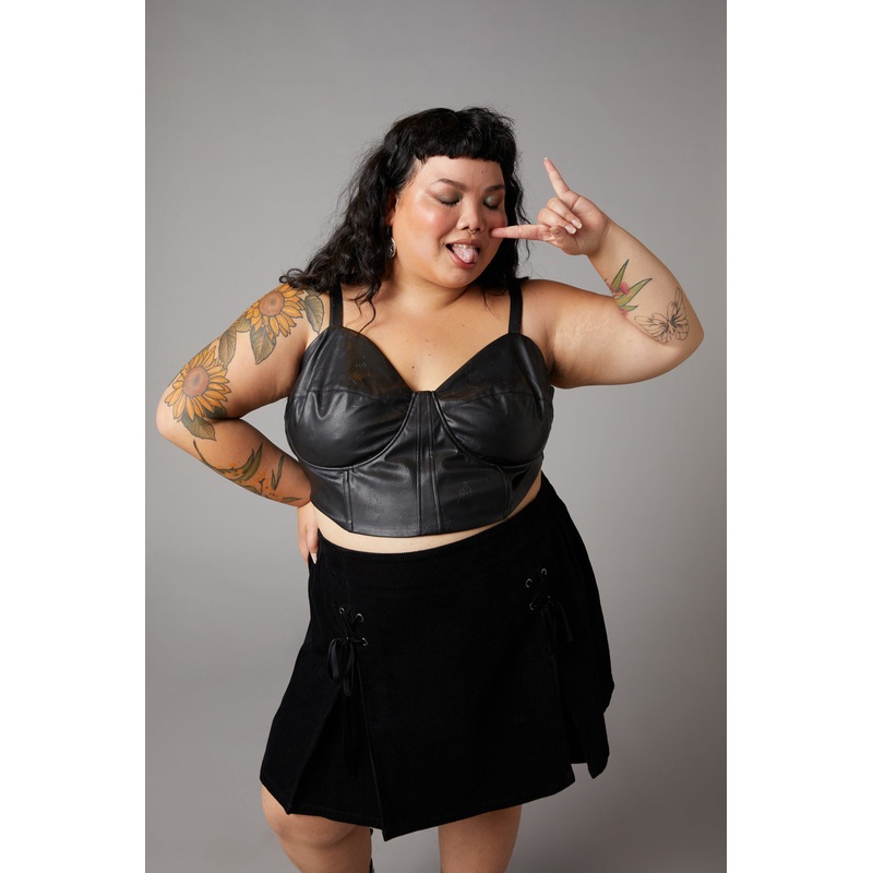 Embossed Corset-Curve-Zipper At Centre Back-Fitted Bodice-Cropped Length-Available In BlackProduct Code: BGFV820140