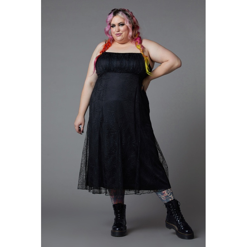 Gothic Dress – Adjustable Spaghetti Straps – Fitted Bodice – Flared Skirt – Zip Closure At Back – Curve Sizing – Made From Lightweight Polyester Georgette – Available In Black