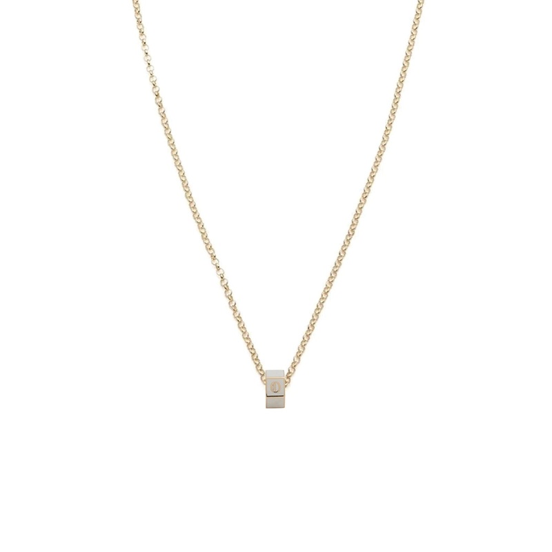 Handcrafted in 18k yellow gold and ceramic, this Custom Faceted Cream Heart Beat necklace pairs our Fine Belcher Necklace. The Faceted Heart Beat that is customizable with up to 6 letters.