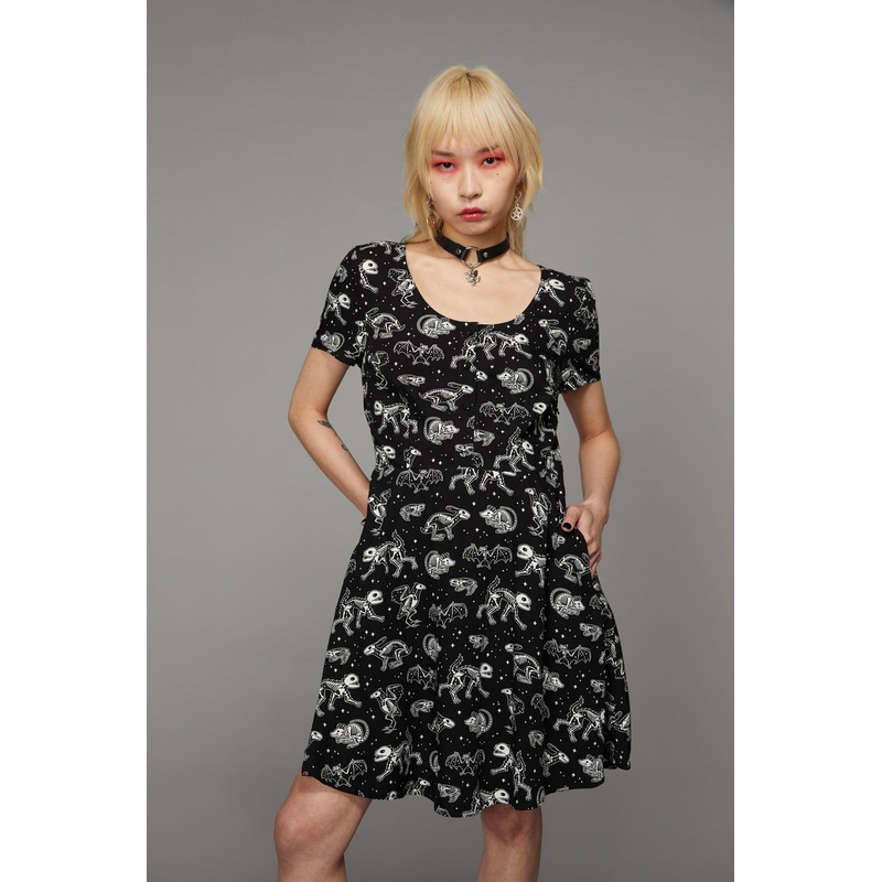 Printed Graphic Dress- All Over 'Animal Skeletons' Print- Short Sleeve Style- Round Neckline- Boxy Fit- Made From Soft Viscose- Available In BlackProduct Code: BGFU083205