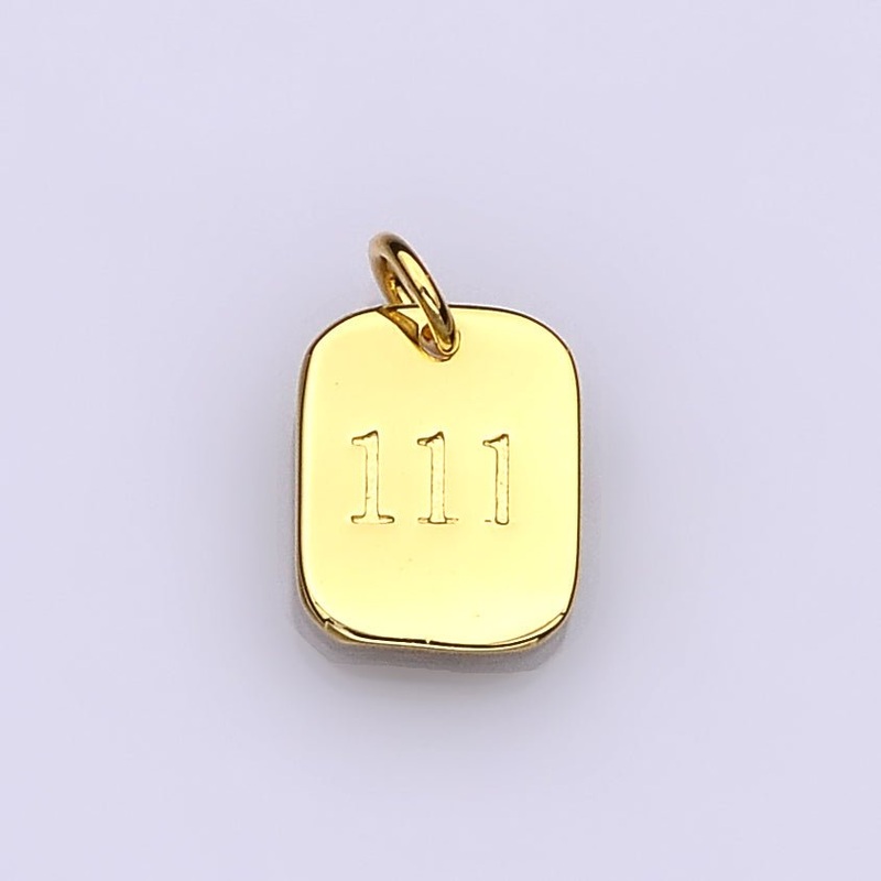 Dainty 24K Gold Filled Angel Number Numerology Engraved Small Military Tag Charm add on Pendant | AC072-AC081 111