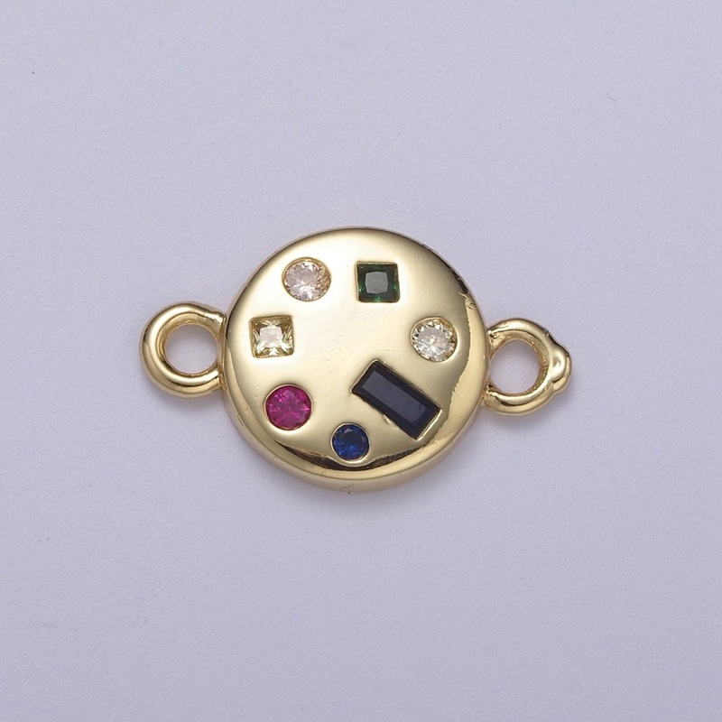 Dainty Gold Fill Round Circle Multi Color Gem Cz Stone Charm Connector for Necklace, Bracelet, Earring Supply F-142