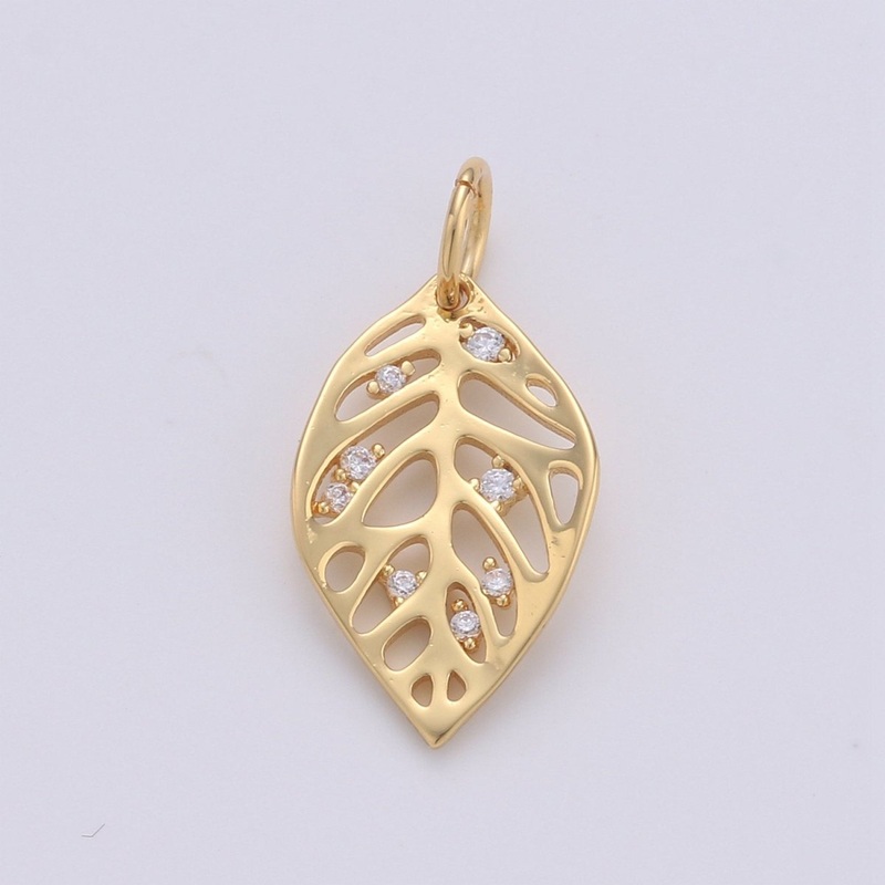 Dainty Gold Monstera Leaf Charms Pendant, Gold Leaf Charm DIY Earring Necklace Jewelry Accessory DIY Craft Micro Pave Charm D-571