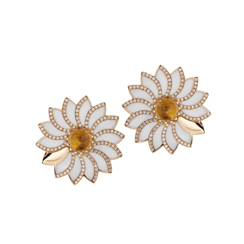 TheDaisy Citrine Earrings aremade from ethically and sustainably sourced18k gold. These flower stud earrings feature white diamonds along the edge of each petal and a cabochon cut citrine in the centre.Part of Basak Baykal'sDaisy Collection.Innocent and pu
