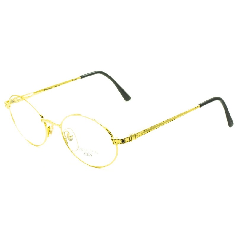 DELTALINE ITALY VINTAGE by HILTON Full Rim Frames100% Authentic - Mod. 590 037Polished gold metal frames and textured armsGloss black acetate arm end coversAdjustable nose pads for a comfort fitNever been worn - Brand new, old stock from the 1980'sLens Wid
