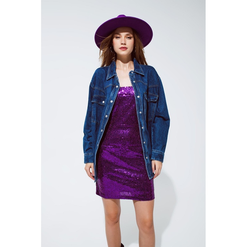 Denim Oversized Cargo Shirt Jacket with PocketsStay stylish and comfortable with this denim oversized cargo shirt jacket. It features long sleeves, an oversized fit, and is suitable for daily wear. The stretch denim fabric provides flexibility, and it come
