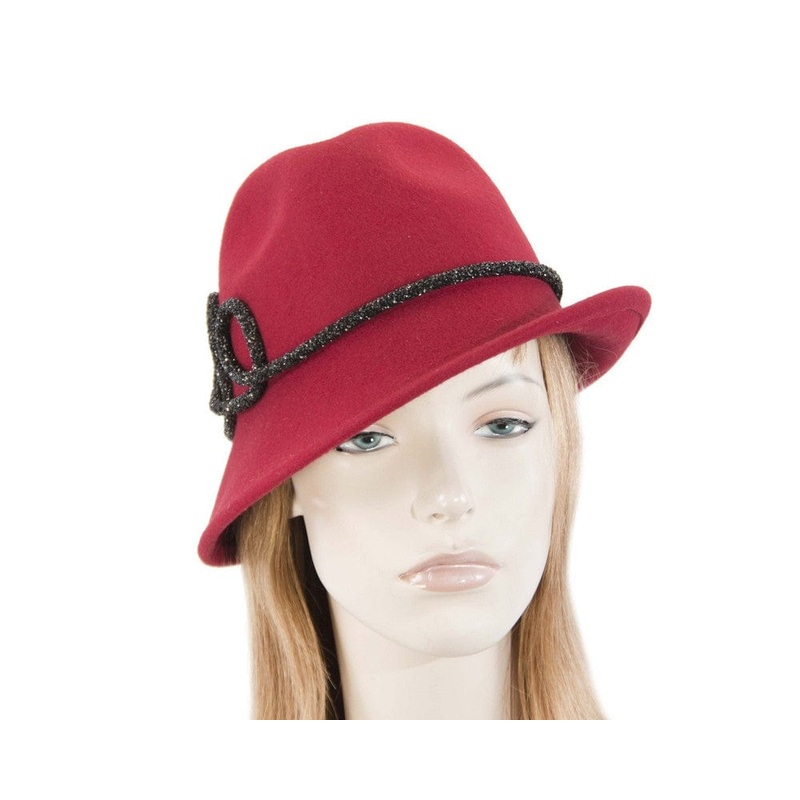 Fashionable red felt fedora hat. We designed special trim that is hand made to perfection, This hat features classic, yet absolutely unusual design and will be a perfect complement to your autumn and winter outfit.Made in AustraliaPurfe wool feltFedora sty