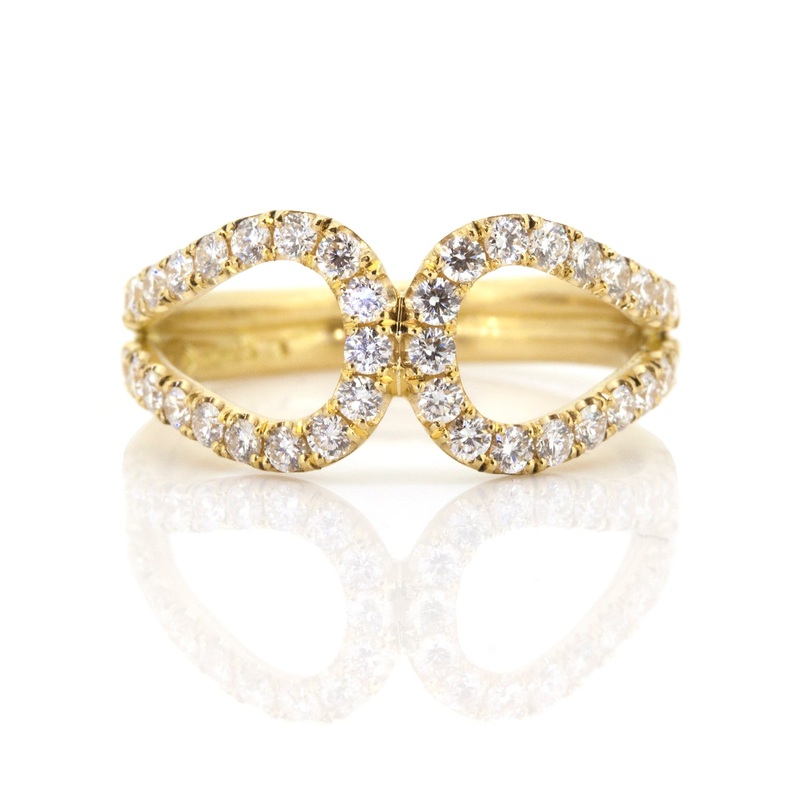 The exquisite Diamond Eternal Ring has been set with 42 stunning, ethically sourced diamonds and will catch the light from every angle.One of a kind and hand crafted in UK, this stunning piece is made from 18ct Fair Trade Yellow Gold and has a total diamon