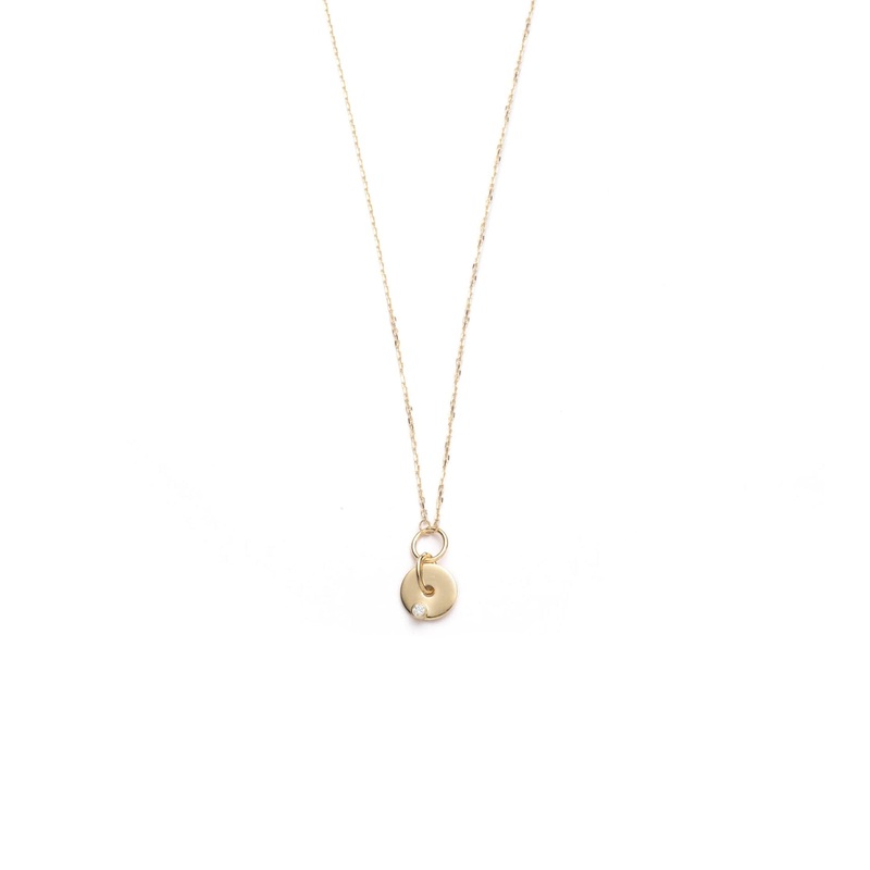 DescriptionHandcrafted in 18-karat gold, this adjustable 16" Disk Drop necklace features a diamond. The perfect Fine Layer to add to your story. Add on a oval annex link and mini coin or crest to build your mini-story today.DetailsHandcrafted in 18-karat g