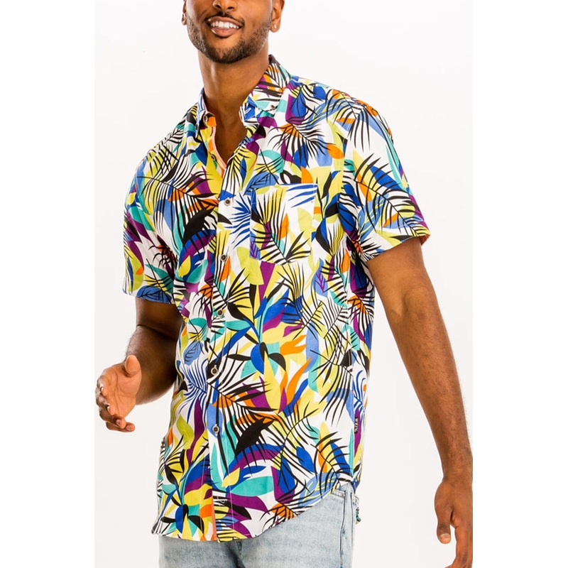 Digital Print Hawaiian Short Sleeve Shirt -Multi Brights on White Background