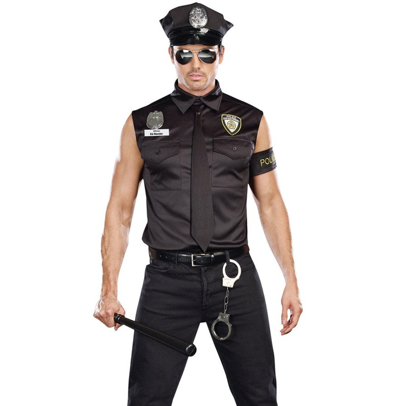 Item Includes:Shirt.Tie.Name Badge.Hat.Armband.Police Badge.Fit and Sizing:See size chart above for details.Fabric and Care:100% Polyester.Hand wash, hang dry.Please Note: Pants, sunglasses, handcuffs, baton, and shoes are not included.Don't upset him...Th