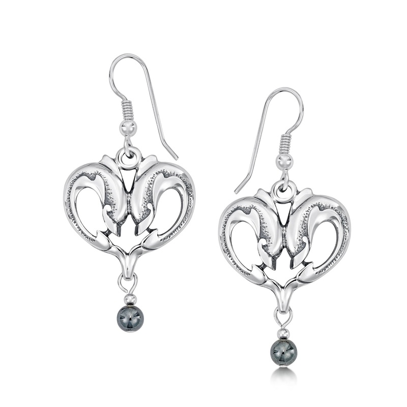 Dolphin Curves Drop Earrings with Hematite