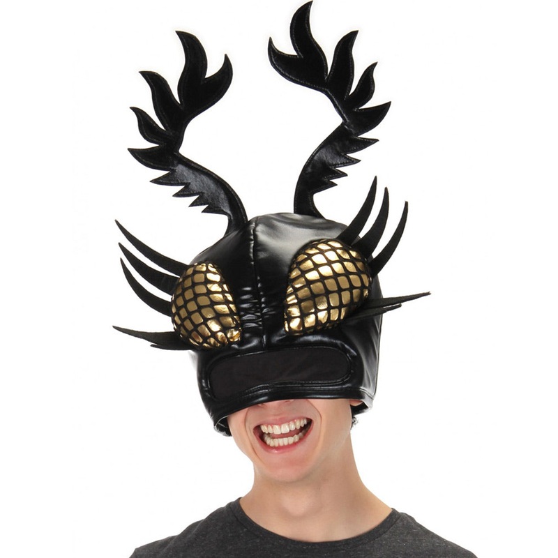 This Dominant Insectoid Hat is an accessory that will have other party guests buzzing. This shiny black hat features large black insectoid antennas at the top and large fibre-filled gold eyes with attached fibre-filled lashes. Inside the hat is an adjuster so anyone can wear it. Place that hat comfortably on top of your head or can be worn further down to cover your own eyes.