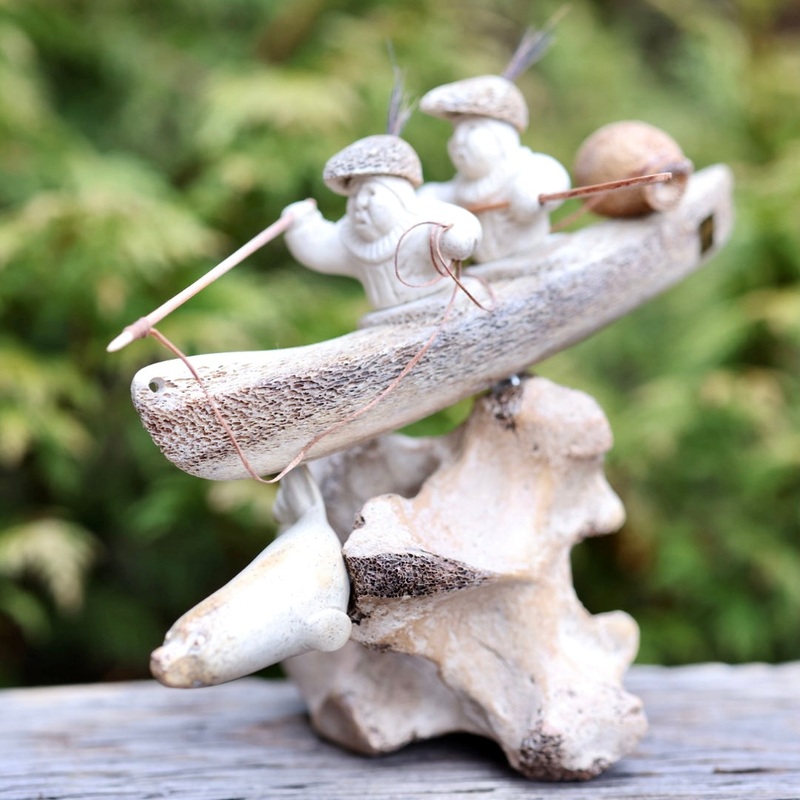 Carved from Fossil Walrus Jawbone & Whalebone*Made in AlaskaSize - 10 x 5 x 7 1/2 LxWxH*Can only be shipped within the USA