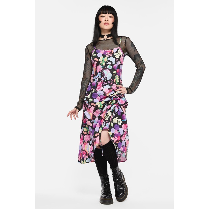 Printed Slip Dress- Features 'Dragons Grove' Custom Print Artwork- Includes Drawstring Detail For Adjustable Wear- Spaghetti Strap Shoulder Line- Soft Hand Feel- Zipper Opening- Made From Cotton- Available In MultiProduct Code: BGFZ261