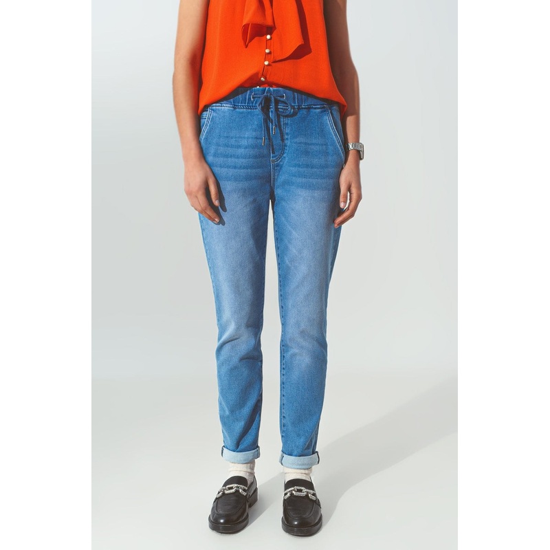 Length: Full length. Subcategory: Jeans. Fit: Jogger . Leg: Straight. Style: Casual. Jean type: Basic. Fabric: Stretch denim. Pockets: Side and back pockets. Zipper: Drawstring closure. Product details: Functional pockets. Waist: Elastic waist. runs true t