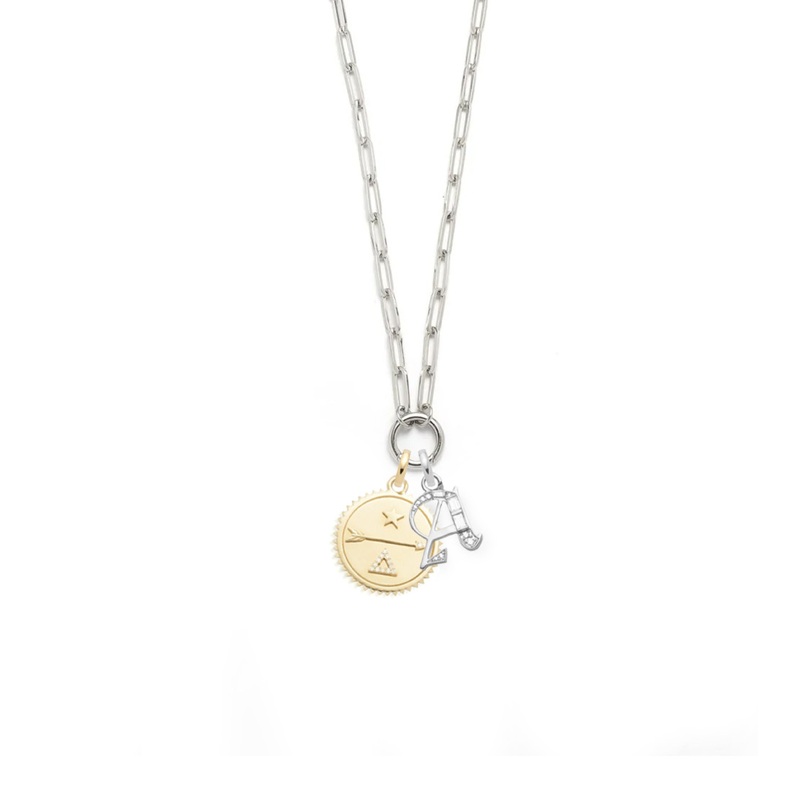 Handcrafted in 18k Yellow and White Gold, this Classic Fob Clip Open Chain Necklace symbolizes Dream and is complimented with a Diamond Initial of your choice. Dream forward. We can actualize our dreams. The divine triangle is often associated with pyramids, arrowheads and sacred mountains, it is also the fire sign in the classical elements. It represents the journey of self-discovery, transformation & ascension. The arrow inspires us to powerfully launch forward and make the dream happen.