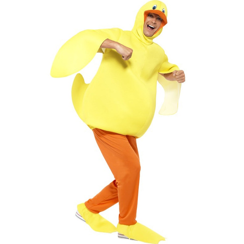 Quack up the fun with this Duck Adult Costume! This funny costume is perfect for adults who want to add a touch of feathered charm to their next costume event. Featuring a hooded duck body top with a standing tail, you’ll be ready to waddle into any party with style. The plush duck facial features on the hood, including an orange beak with a lip feature, add a delightful touch of realism. Paired with orange pants and yellow shoe covers, this costume is the true definition of quack-tastic style. Whether you’re gearing up for Halloween, a themed party, or just a day of playful dress-up, our Duck Adult Costume promises to make you the life of the pond.