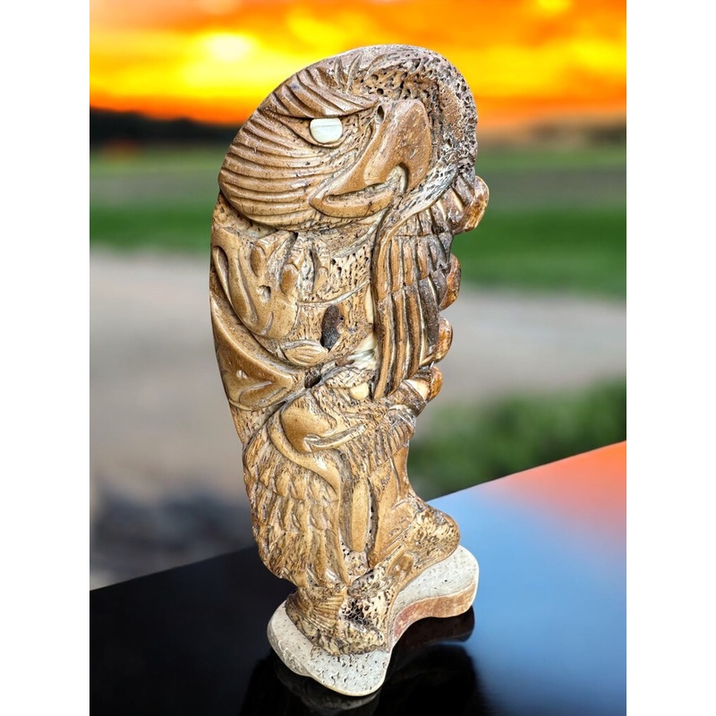 Carved from Fossil Walrus Jawbone with Ivory featuresSigned by Artist Aaron BarrettSize - 4 1/2 width x 2 14 length x 7 3/4 heightOne of a kind