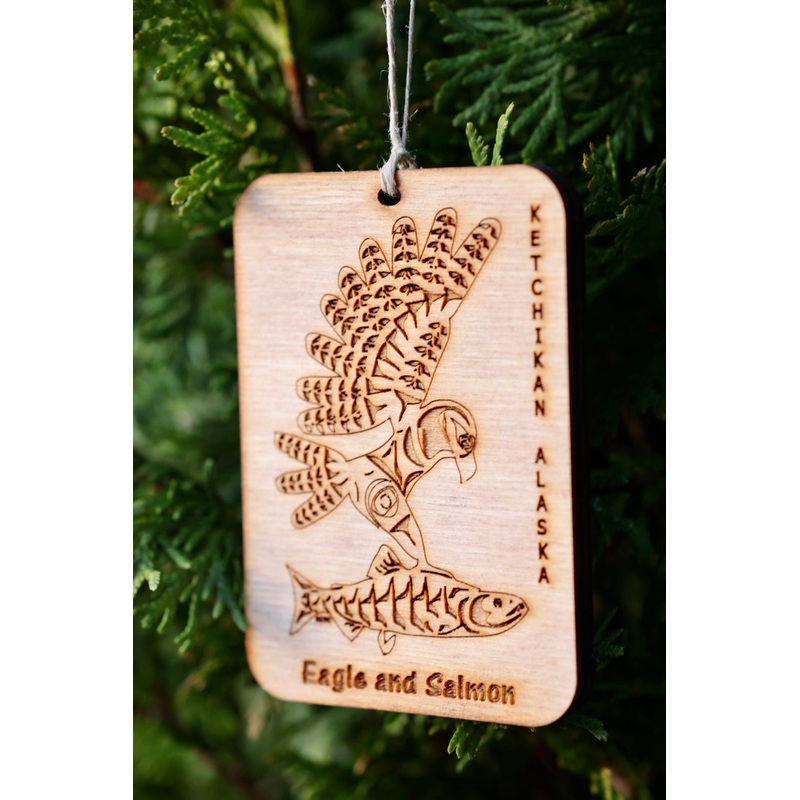 Wooden OrnamentMade in Ketchikan, AlaskaDimensions: 3.5" x 2