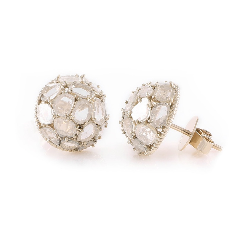 Earring Zero 1 is an exquisite pair of polki half-ball cluster earrings that have an heirloom like quality. Hand crafted in 18k white gold with 1.99cts Uncut Diamonds.Part of the 10.18 launch collection of exquisite fine jewellery from IVAR by Ritika Ravi.