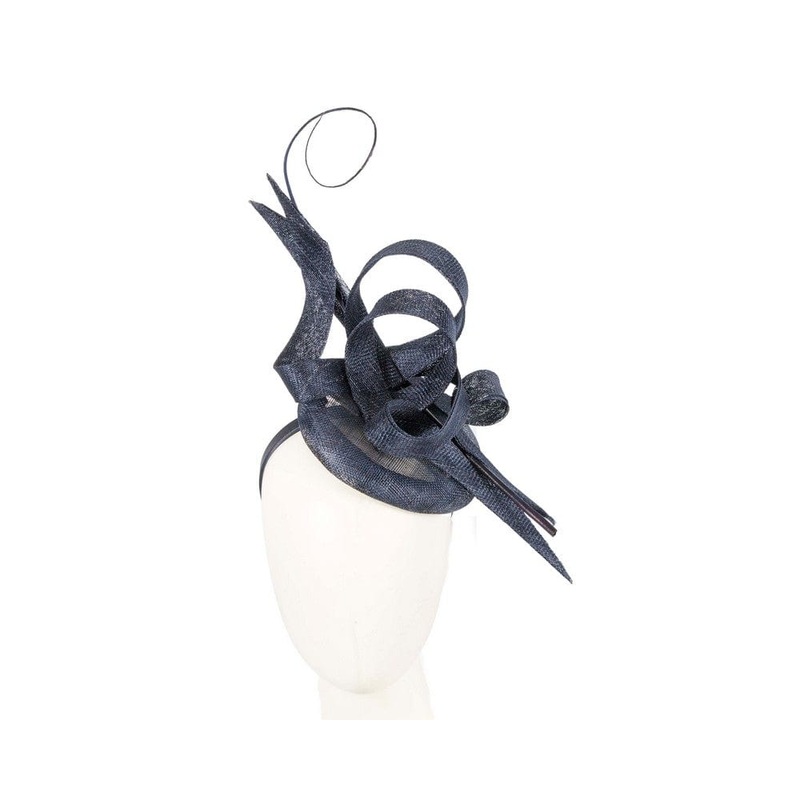 Edgy tall navy fascinator from latest Max Alexander collection. This elegant fascinator features loops of fine sinamay upon round base and finished with a long feather. Designed in Australia by Max Alexander Stylish design Comfortable headband Hats From OZ