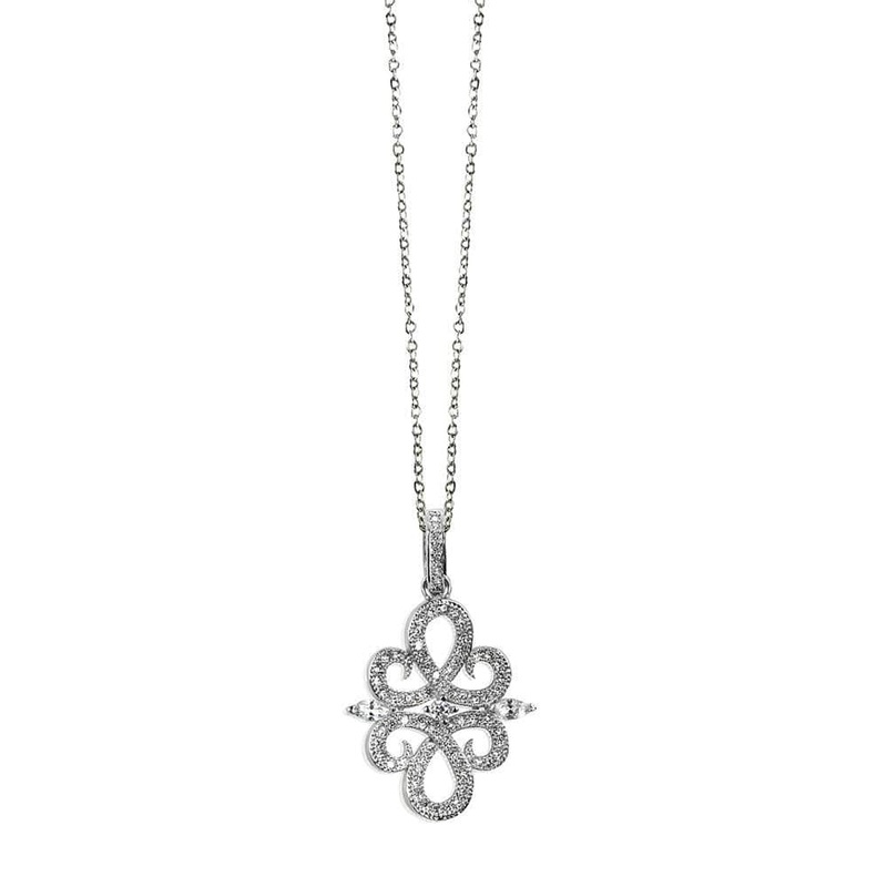 A stylish stainless steel necklace accented with an eye catching outline of shiny pave zirconia for a chic look with any attire.
