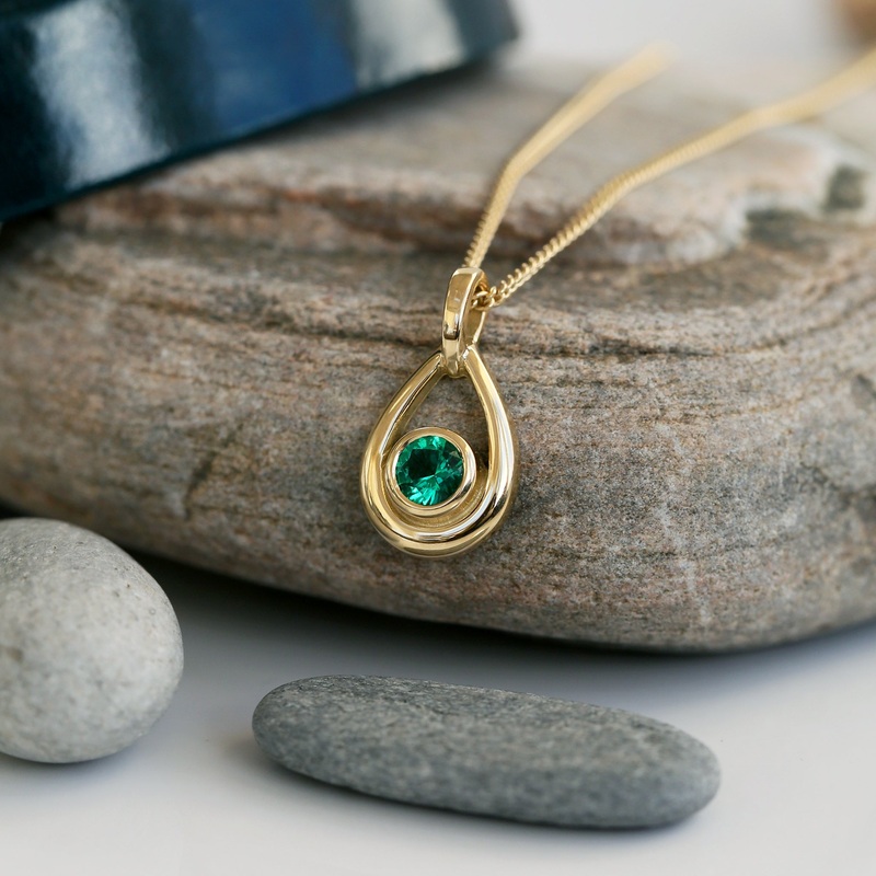 Emerald Droplet Pendant in 18ct Yellow Scottish Gold