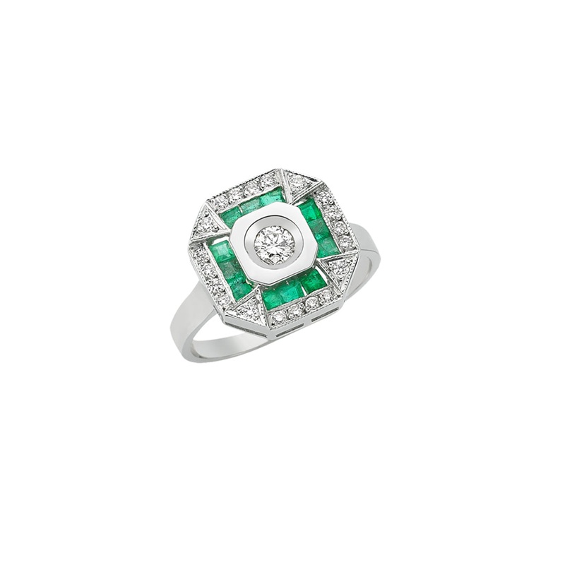 The Emerald Lulu Ring is a stunning cocktail ring set in 18karat white gold, featuring pave white diamonds, emeralds and a diamond solitaire in the centre. Designed by Istanbul fine jewellery designer Melis Goral.Part of The Paris Collection, inspired by t