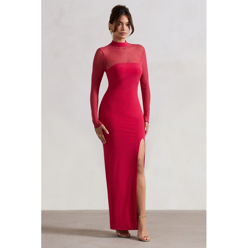 Revel in red this event season in Enchantress, our stand-out maxi dress. Designed in our signature dual-layered jersey, this curve-enhancer boasts long mesh sleeves and a demure high neckline before finishing with a sultry high-leg split. Keep Enchantress