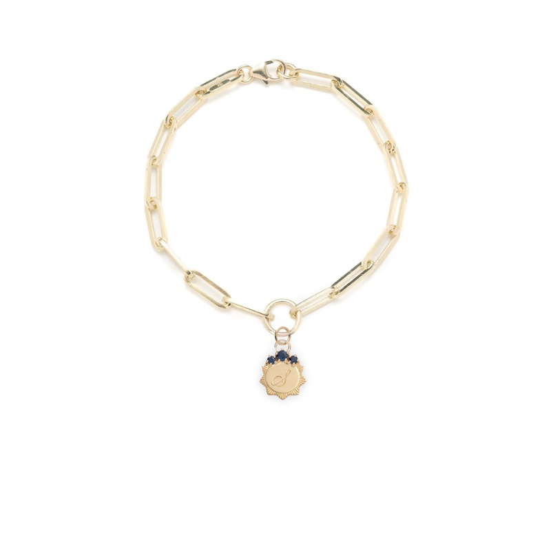 Handcrafted in 18 karat yellow gold, this Classic Fob Clip Chain Bracelet features our Sapphire Engravable Miniature Medallionthe birthstone for September. The name sapphire comes from the Latin sapphirus and Greek sappheiros, meaning blue stonethe celestial blue color of this gemstone symbolized heaven and was thought to attract divine favor and wise judgment. Because we take great pride in our artisanship, these miniature medallions are lovely with or without engraved initial.
