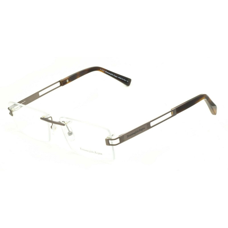 Ermenegildo Zegna Rimless Frames - 100% Authentic - EZ 5075 037Satin brown metal frames and sides engraved with EZ logosGloss havana brown acetate arm endsPrecision spring hinges and adjustable nose pads for a comfort fitNever been wornLens Width = 55mmLen