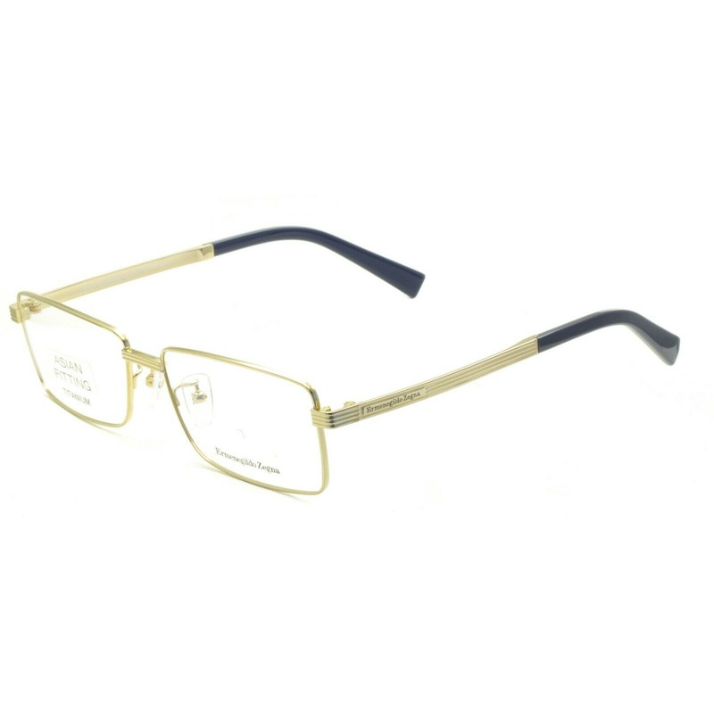 Ermenegildo Zegna Full Rim Frames - 100% Authentic - EZ 5096-D 017Asian FittingPolished gold titanium frames and arms with EZ logosGloss dark blue acetate arm endsAdjustable nose pads for a comfort fitNever been wornLens Width = 57mmFrame Height = 35mmBrid