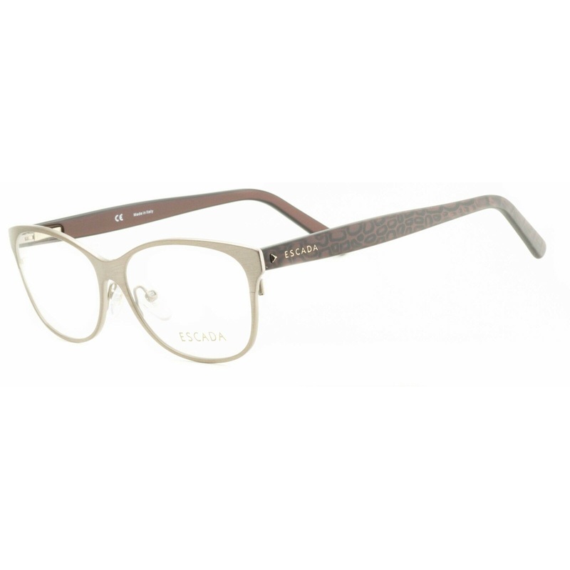 Escada Eyewear Full Rim Frames - 100% Authentic - VES 826 COL. 08PWBrushed bronze metal frames, matte patterned bordeaux acetate arms inlaid with Escada logosPrecision spring hinges and adjustable nose pads for a comfort fitNever been wornLens Width = 54mm